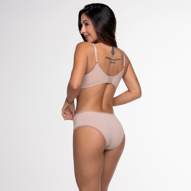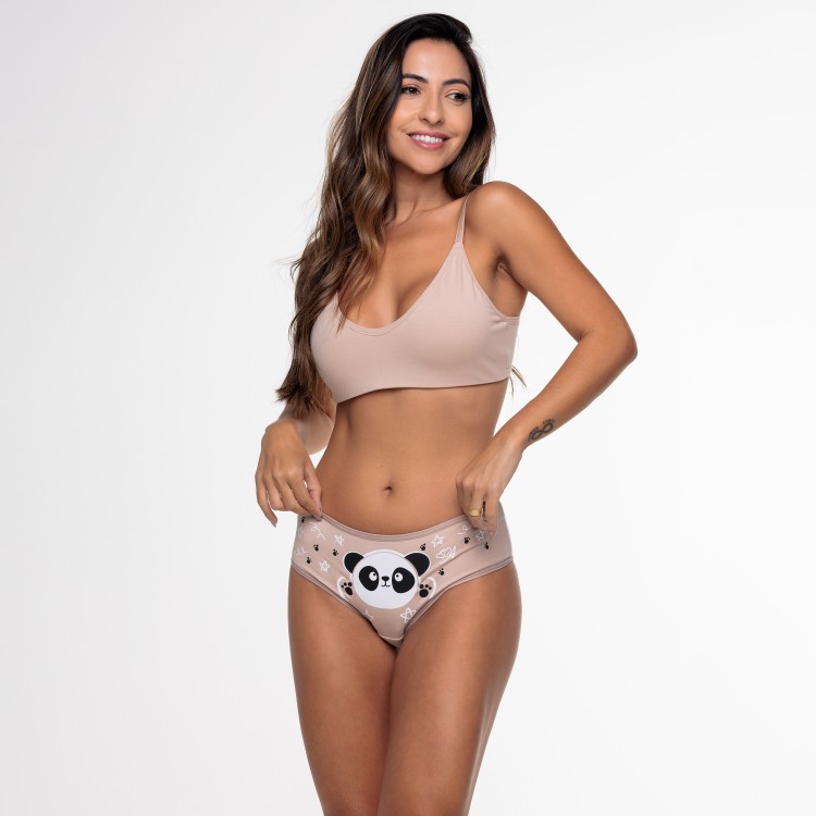 Calçola Estampada na cor Areia em algodão egípcio com viés de elastano com poliamina. Detalhe de estampa em silk na parte frente da peça. Lateral e costas maiores, modelagem super confortável.