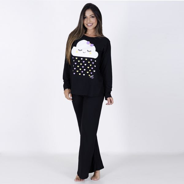 Pijama longo 100% algodão, manga longa e calça comprida, com cadarço na cintura para que se ajuste perfeitamente ao seu corpo.Super confortável e estiloso e ainda acompanhado de uma linda necessaire na mesma estampa da peça (nuvem)