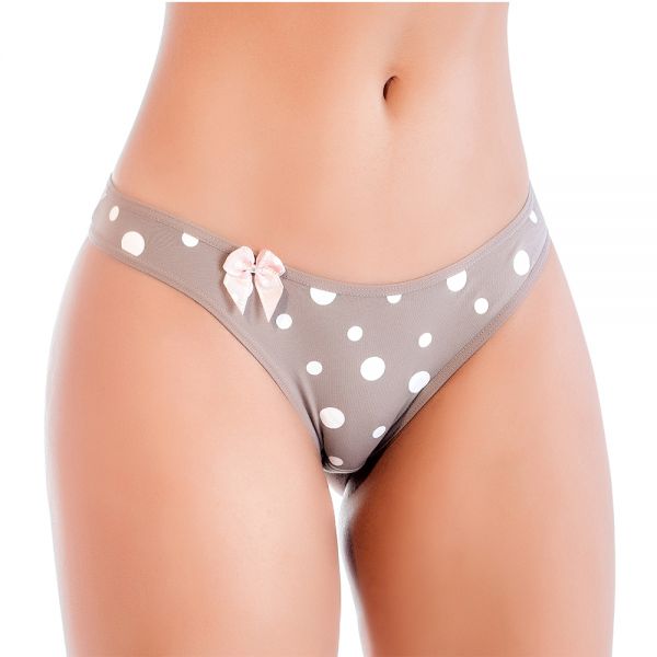Fio Dental confeccionado em algodão egípcio na cor Areia. Modelo possui estampa em Silk Poá e detalhe em laço na lateral da frente da peça. Ideal para o seu dia a dia, proporcionando conforto e bem estar.