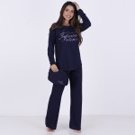 Pijama Longo em Algodão e Poliéster . Composto por duas peças, o modelo é ideal para boas noites de sono. A blusa apresenta decote em "U", mangas longas e detalhe de estampa em silk e Strass. Já a calça, em modelagem básica, possui elástico e fita para amarrar. Acompanha linda necessaire com strass.