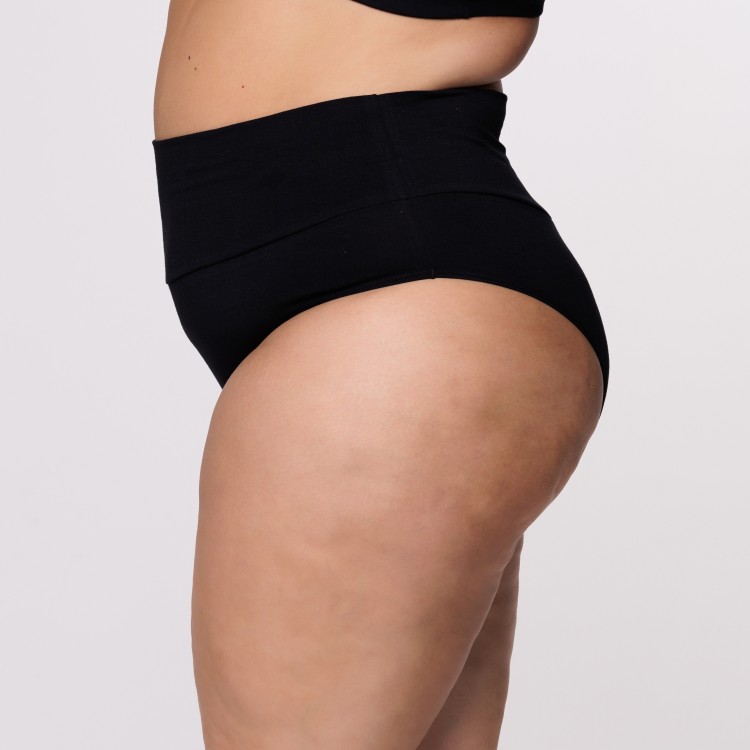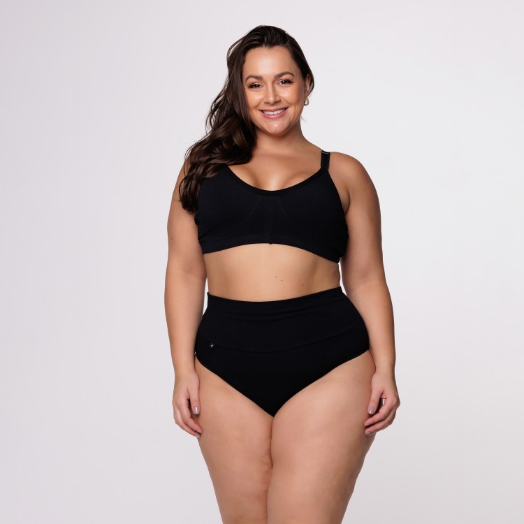 Calcinha Plus Size Cós Super Largo em Algodão Egípcio na cor Preta