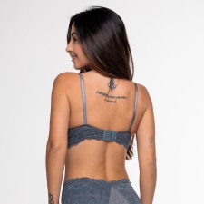 Sutiã com Bojo Flexível Sem Aro em Algodão Egípcio e Renda Cinza Mescla Escura