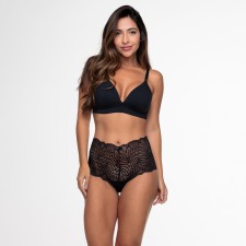 Caleçon na cor Preto em algodão egípcio com viés em elastano e poliamida com renda larga na cintura e detalhe em laço com pedra Strass na frente.Modelagem super bonita no corpo.
