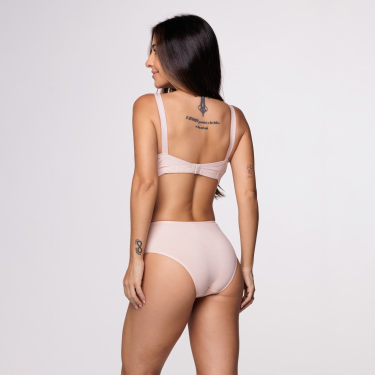 Calcinha de cintura alta na cor Nude com detalhe em renda